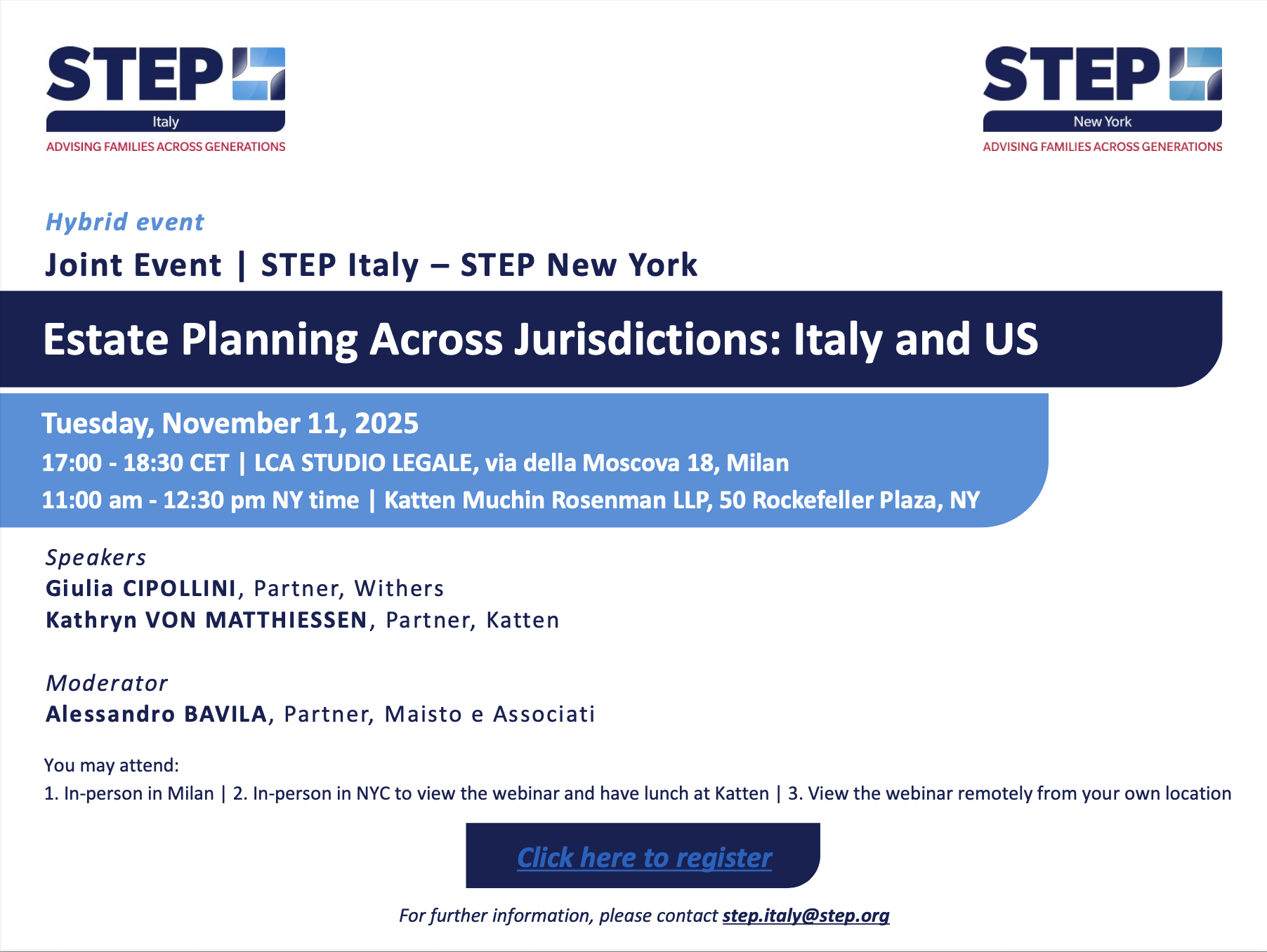 11:00 am - 12:30 pm ET - option to view webinar in-person and have lunch sponsored by Crestbridge Fiduciary at Katten in NYC.